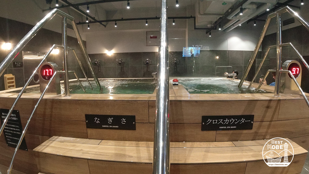水温16度前後「なぎさ」の水風呂と水温10度未満の「クロスカウンター」の2種類の水風呂が完備。