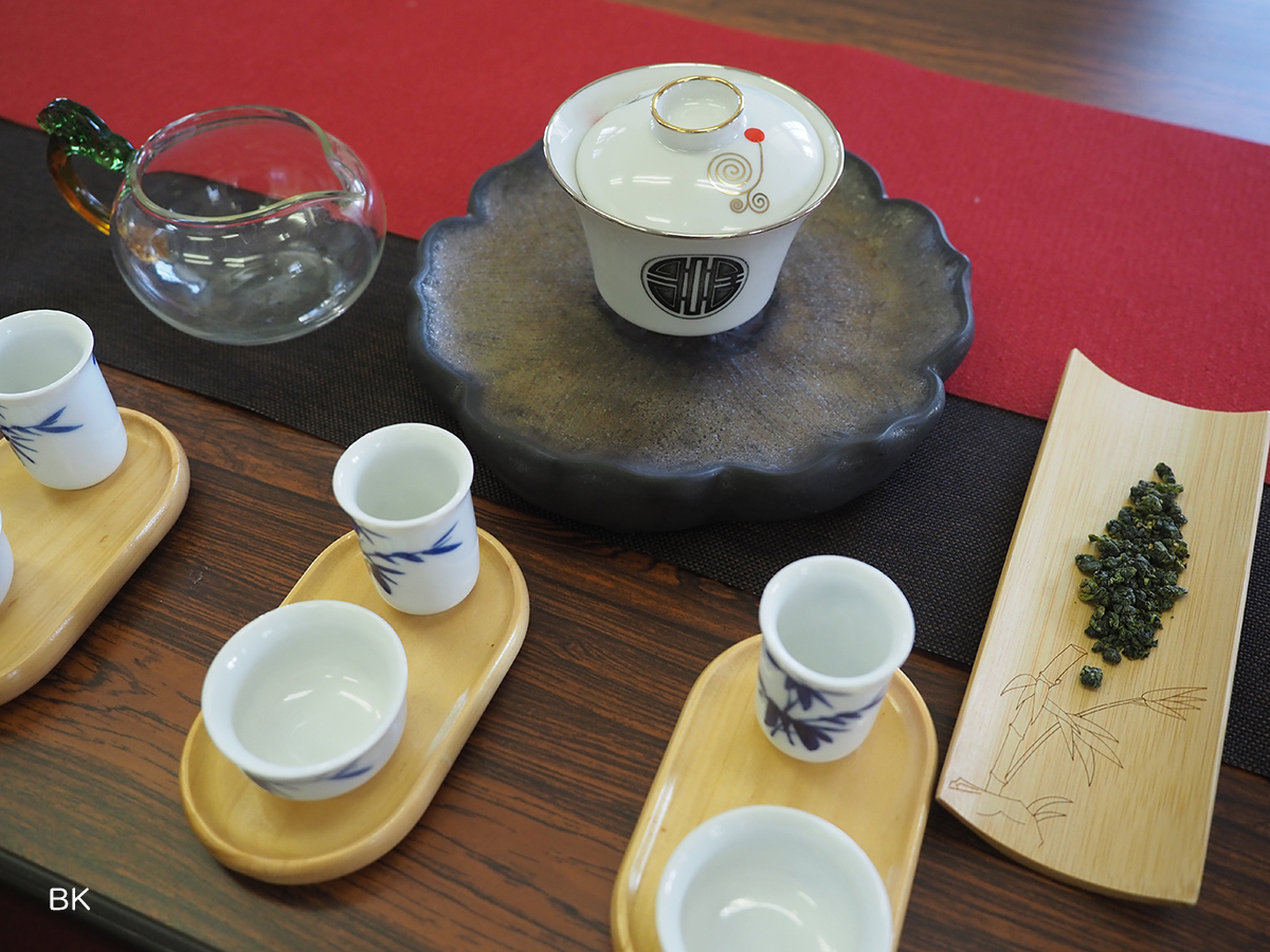 テーブルの上には、台湾茶席ならではの茶器が整然と並びます。
