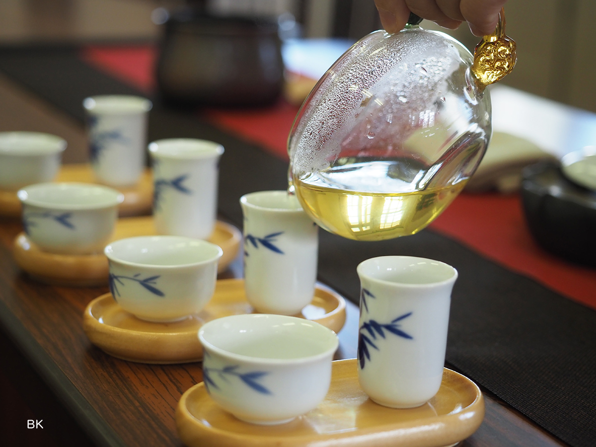 美しく、無駄のない動きは、茶藝師ならではの技なのだそうです。視覚、香り、味覚が重なり合い、五感で楽しむお茶の時間が流れていきます。