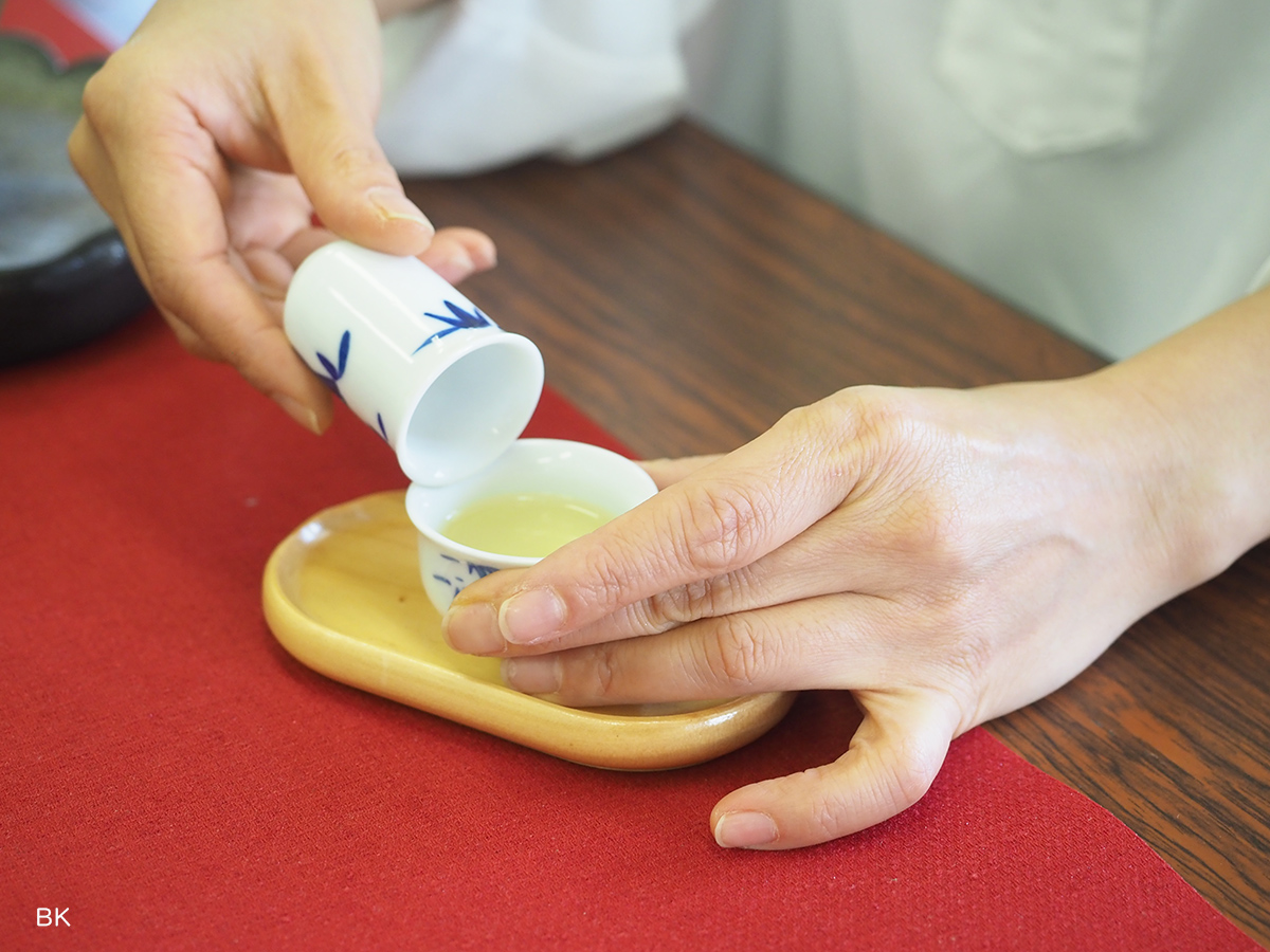 飲用するのは二煎目から。丁寧な工程を経て淹れられたお茶は、やさしい香りとともに、ほのかな甘みとしなやかな口当たりが印象的でした。