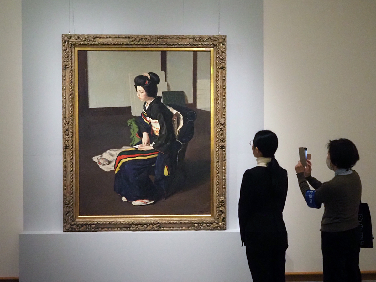 展示室で《日本髪の娘》の前に立つと、まず感じるのはその静けさです。