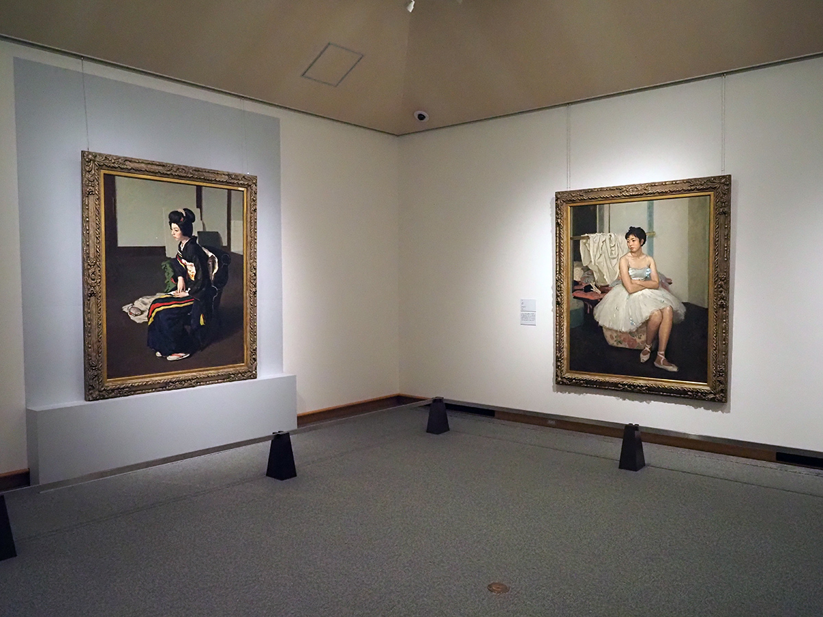 《踊り子》は舞台衣装をまとい、華やかさと若さを感じさせる一方で、《日本髪の娘》は抑制された色調と姿勢の中に、内面の緊張感が宿っています。
