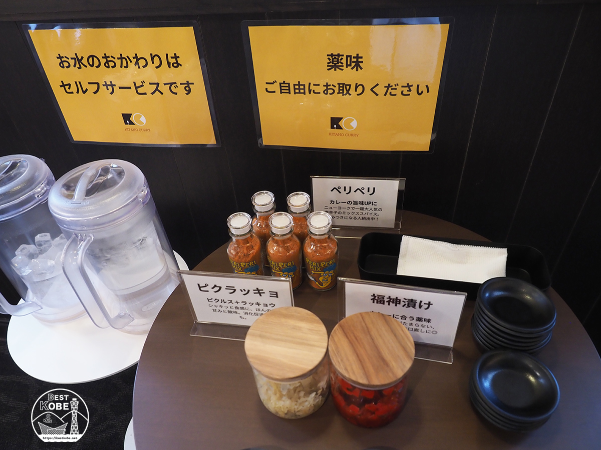 カレーのお供として用意されているのが、「福神漬け」・ピクルスとラッキョを組み合わせた「ピクラッキョ」。食感と酸味がスパイスの効いたカレーをさらに引き立てます。