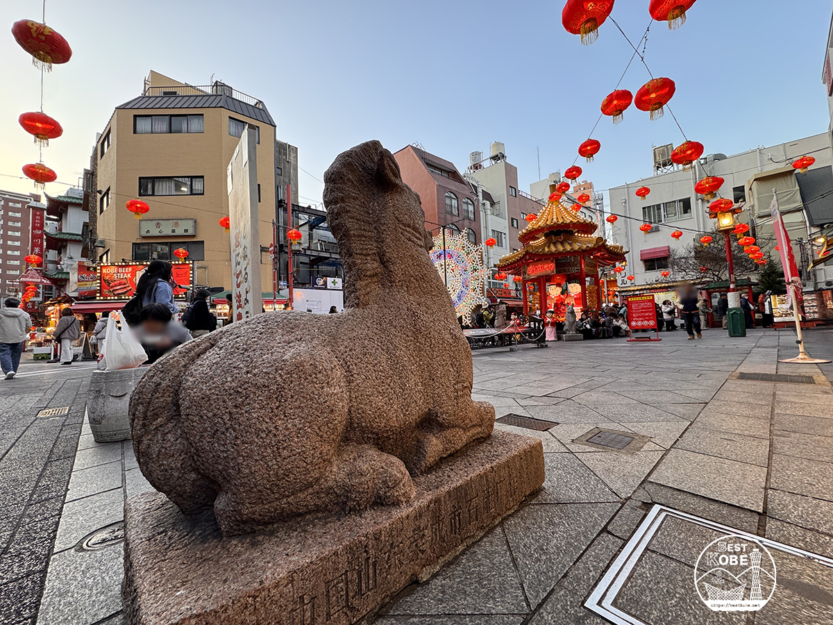 神戸で干支モチーフを探すなら、まず思い浮かぶのが南京町。南京町広場には、十二支の石像が設置されています。