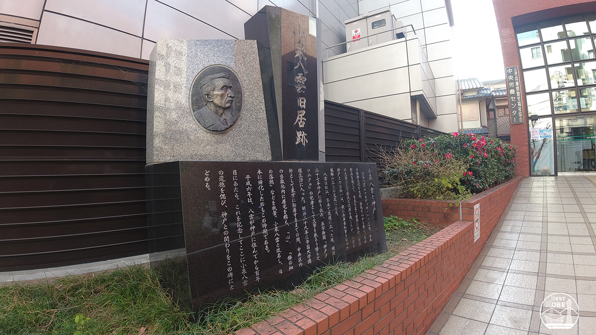神戸で暮らした住居跡のひとつには、現在「小泉八雲旧居跡」の記念碑が建てられています。